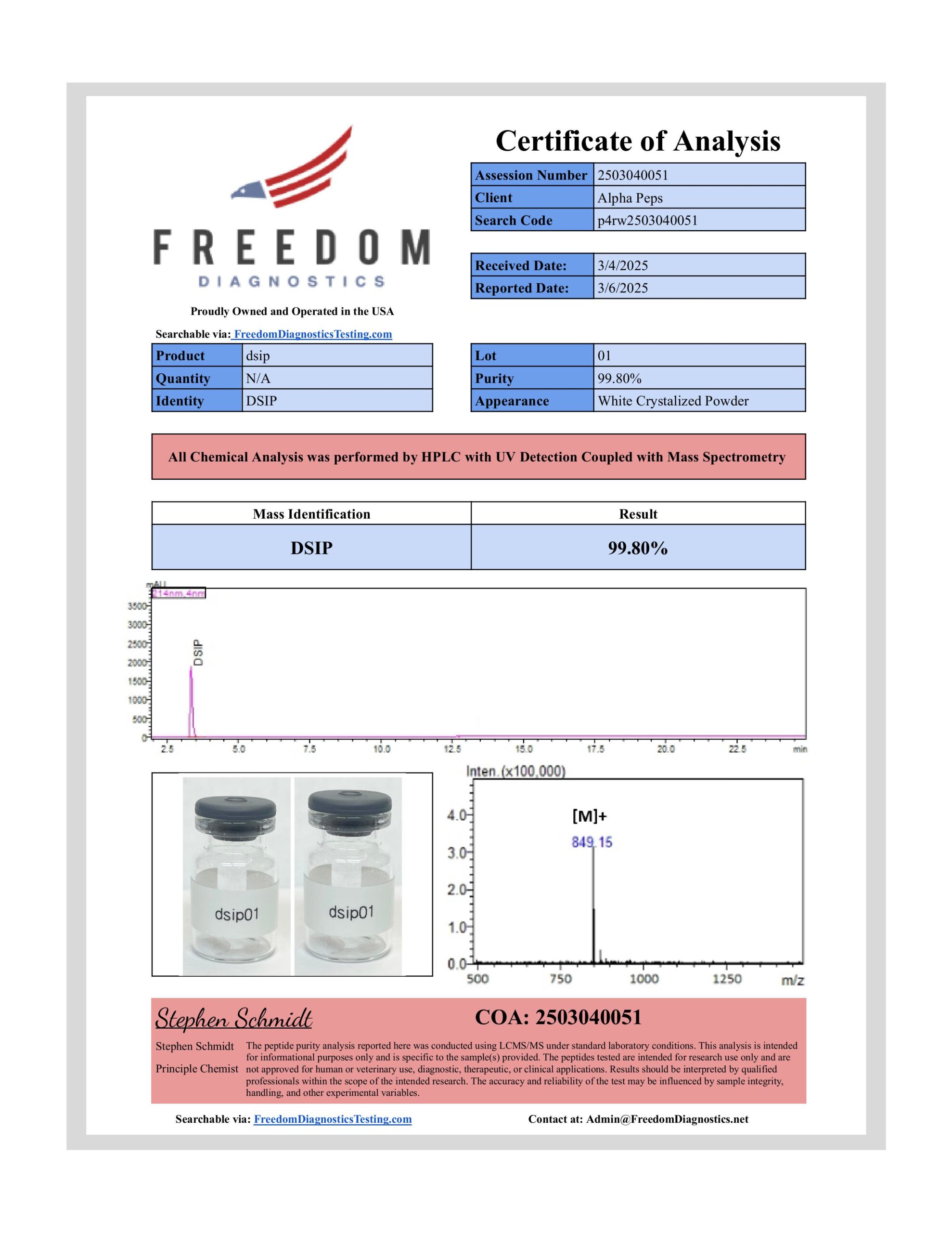 DSIP, or Delta Sleep-Inducing Peptide, is a naturally occurring neuropeptide that is involved in various physiological functions, including sleep regulation and stress response. This particular formulation, DSIP 5mg, is specifically intended for research purposes and is characterized by its high purity level of 99%. This purity is crucial for researchers, as it ensures the integrity of experimental results and allows for the accurate study of DSIP’s properties and effects.