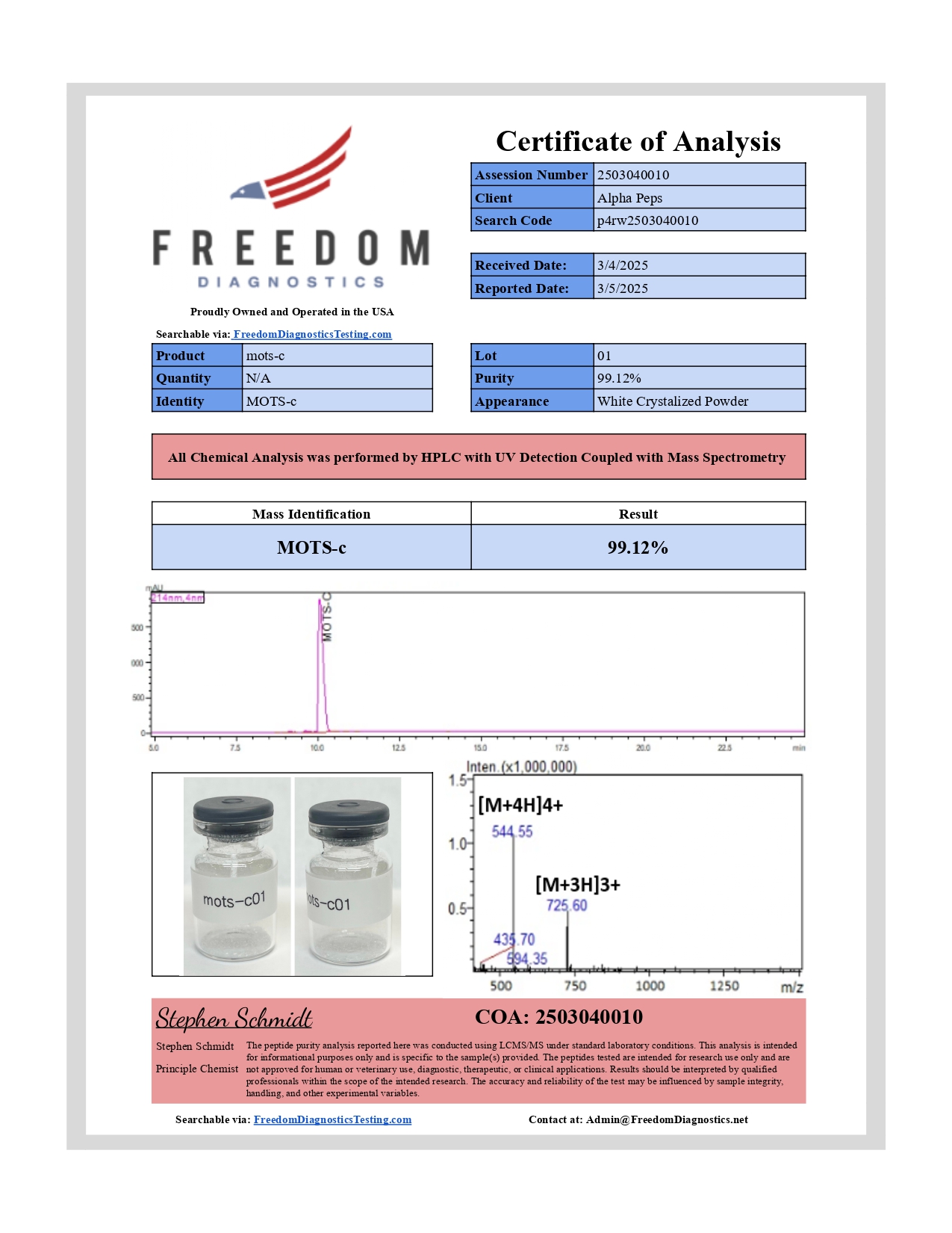 The emphasis on Mots-c’s 99% purity level is paramount in research settings, as such purity ensures that experimental results are both reliable and replicable. Purity is a key indicator of quality in peptides, and Mots-c’s high purity minimizes the presence of impurities, which can adversely affect research outcomes. In the context of molecular research, a pure peptide allows for more accurate interpretations of data, as variations due to contaminants are significantly reduced. This purity level is not merely a number; it is a representation of the rigor applied during peptide synthesis and purification processes.